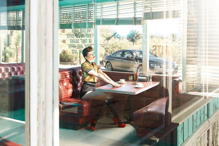 BMW has unveiled a set of 15 photos featuring its 6-Series Gran Coupe in a burlesque theme at a Hollywood studio and a private movie set outside of LA by German photographer Uwe Düttmann. The retro-inspired photographs were revealed for the first time at the opening of Paris Photo, an international photographic art fair in Los Angeles.