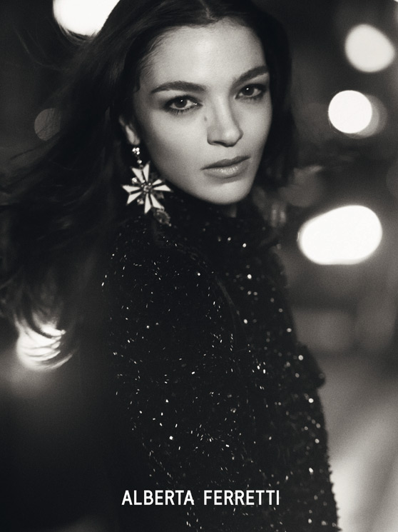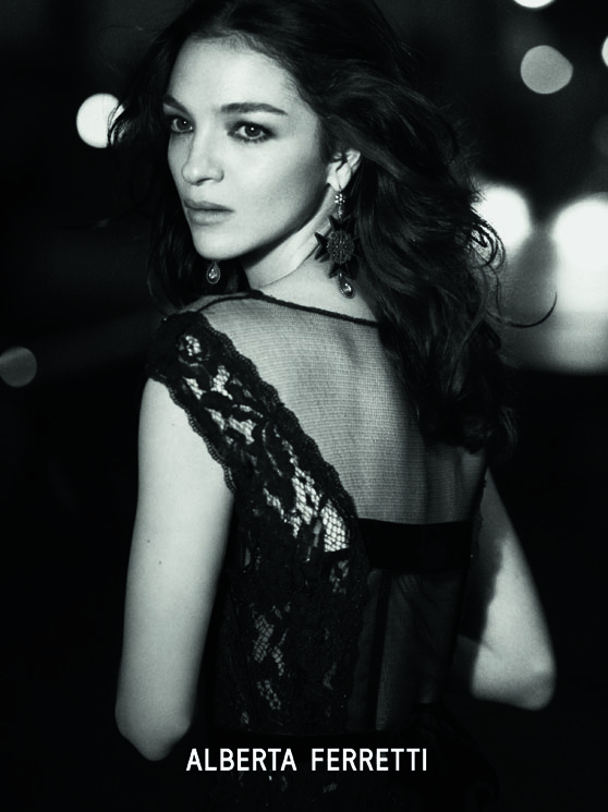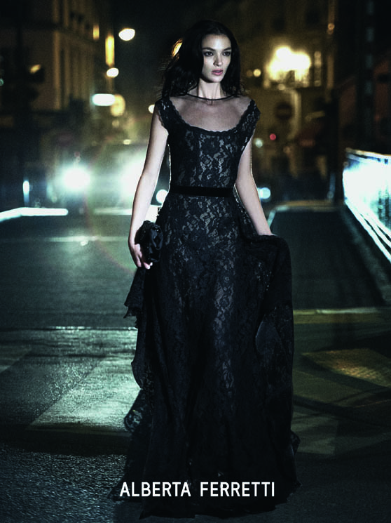 The maison choosed Mariacarla Boscono as the face of the new Alberta Ferretti Fall Winter 2013 campaign shot by Peter Lindbergh. The supermodel has been immortalized while wearing some of the most representative pieces of the winter collection by Alberta Ferretti: a long and romantic black lace dress; a short ruby-red dress. Images also linger on details, that are always very sophisticated.