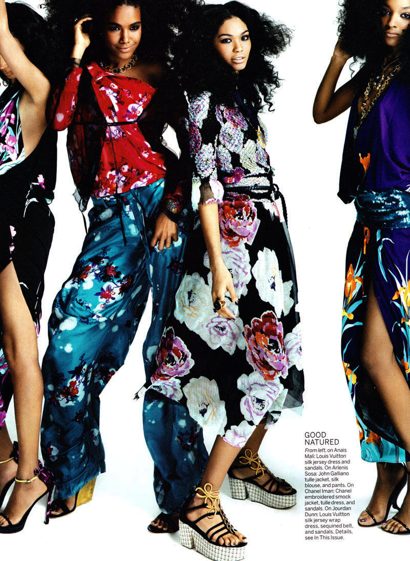 Norman Jean Roy’s The Life Rhapsodic takes some of industry’s top black models and swaths them in bohemian inspired looks for the spring. Styled by Edward Enninful, beauties Ajak Deng, Joan Smalls, Jourdan Dunn, Arlenis Sosa, Chanel Iman and Anais Mali give high energy performances in colorful looks from the likes of Oscar de la Renta, Roberto Cavalli and Yves Saint Laurent alongside celebrity subjects.