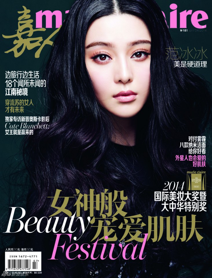 Chinese actress Fan Bingbing graces the cover of Marie Claire China April 2014 issue, looking gorgeous in these high gloss images shot by the famous Feng's Brothers. The dark-haired stunner was styled in standout designs from Louis Vuitton Spring Summer 2014 collection. Fan has made a name for herself in the fashion world, as a face of L’Oreal Cosmetics and was tapped by Marc Jacobs to be on the Louis Vuitton Spring Summer 2014 campaign.