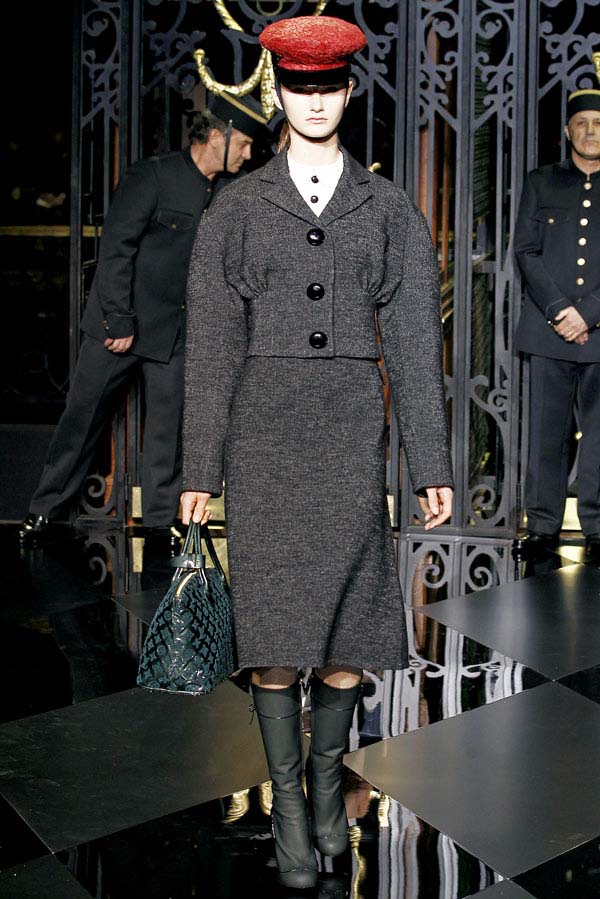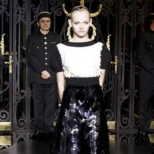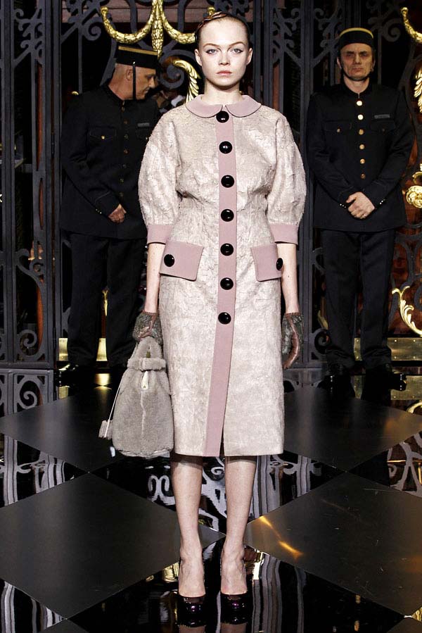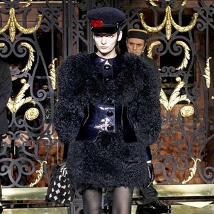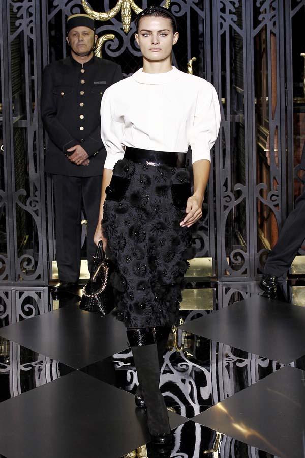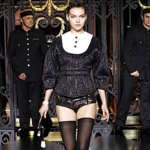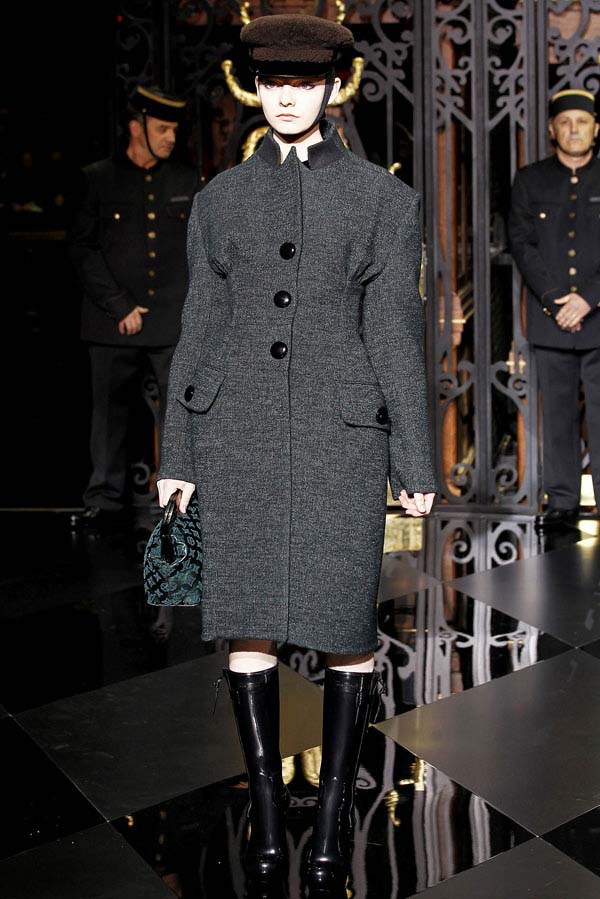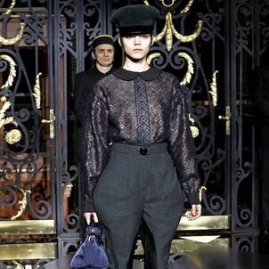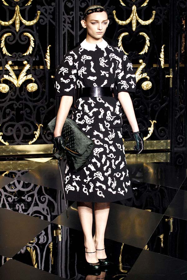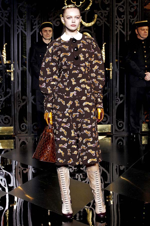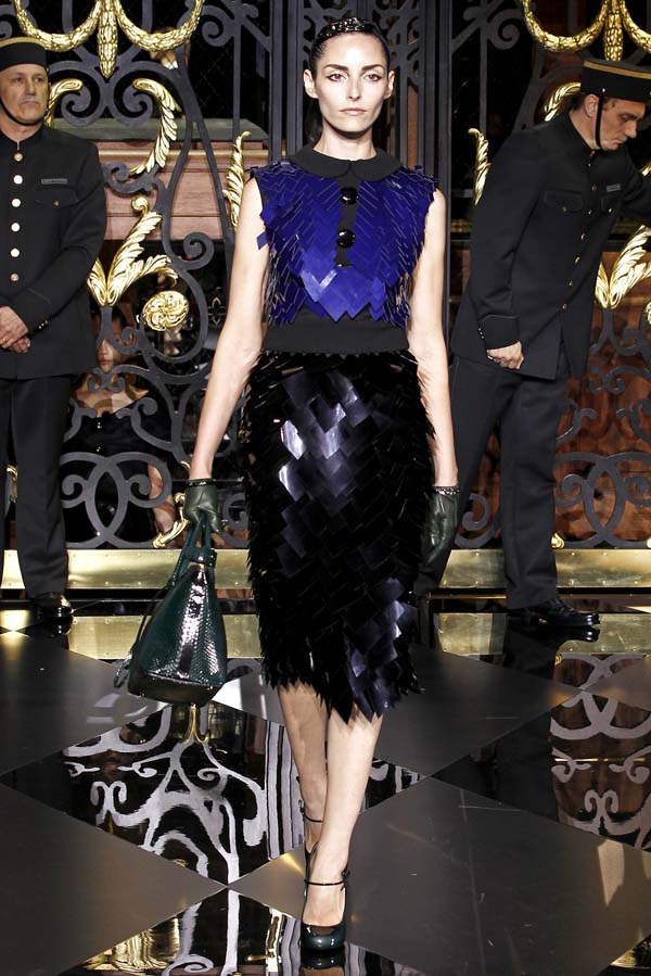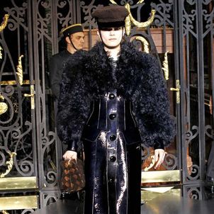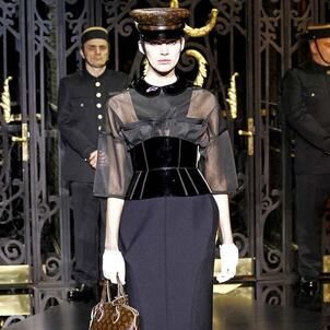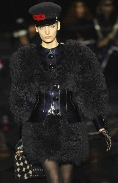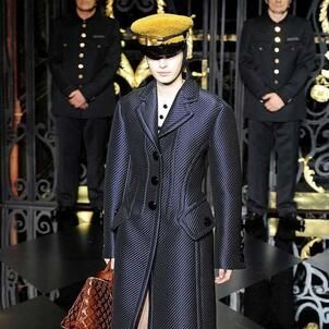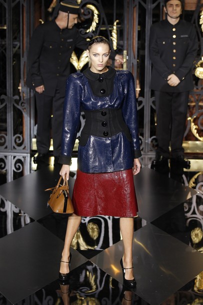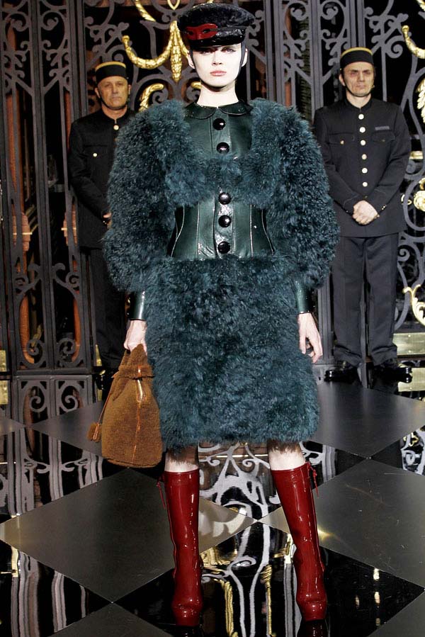 On the final day of Paris Fashion Week, Louis Vuitton show opened with fetish-inspired collection as the models stepped out of three elevators onto the catwalk. Creative director Marc Jacobs send models including Freja, Shu Pei and Kinga strutting the stuff on runway donning handcuffs, pantless outfits, leather pieces, lace and lovely sheer and masks placed on chauffeur hats.