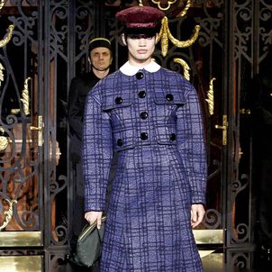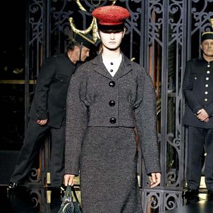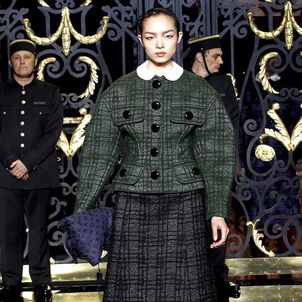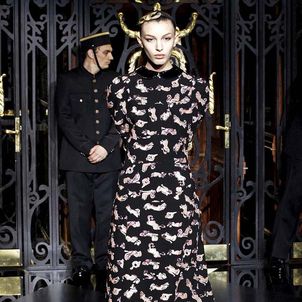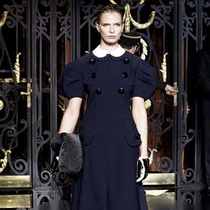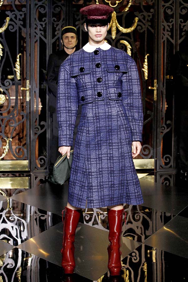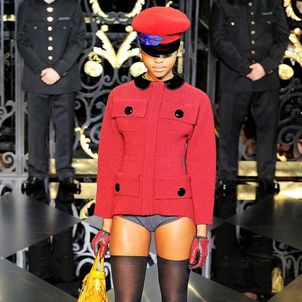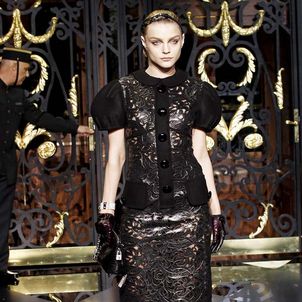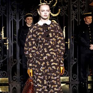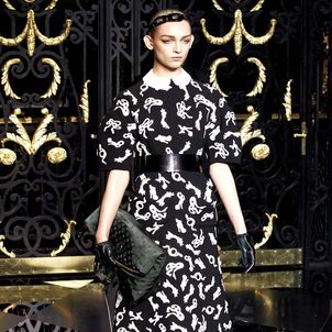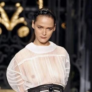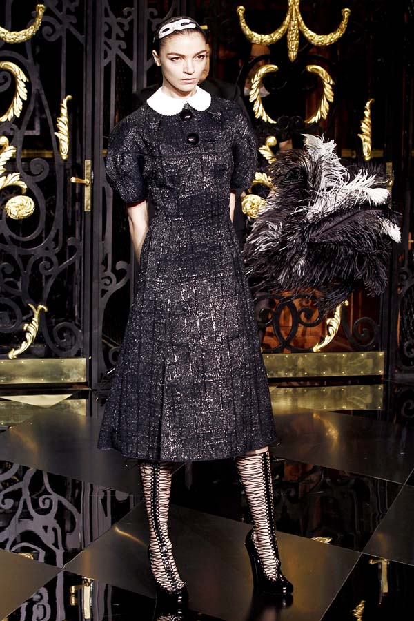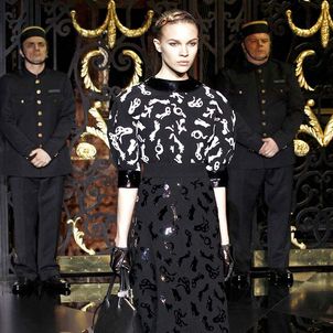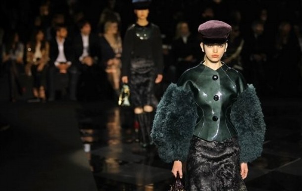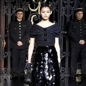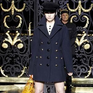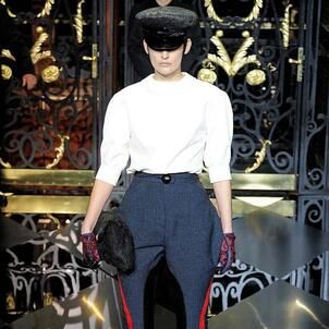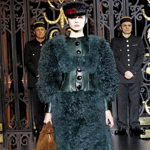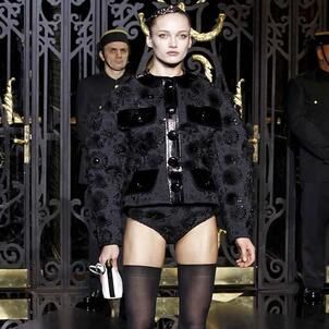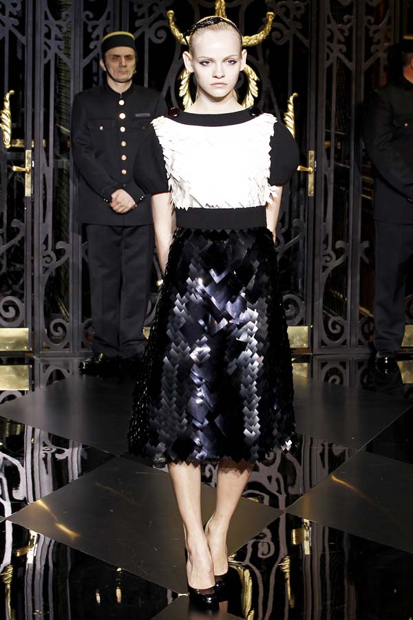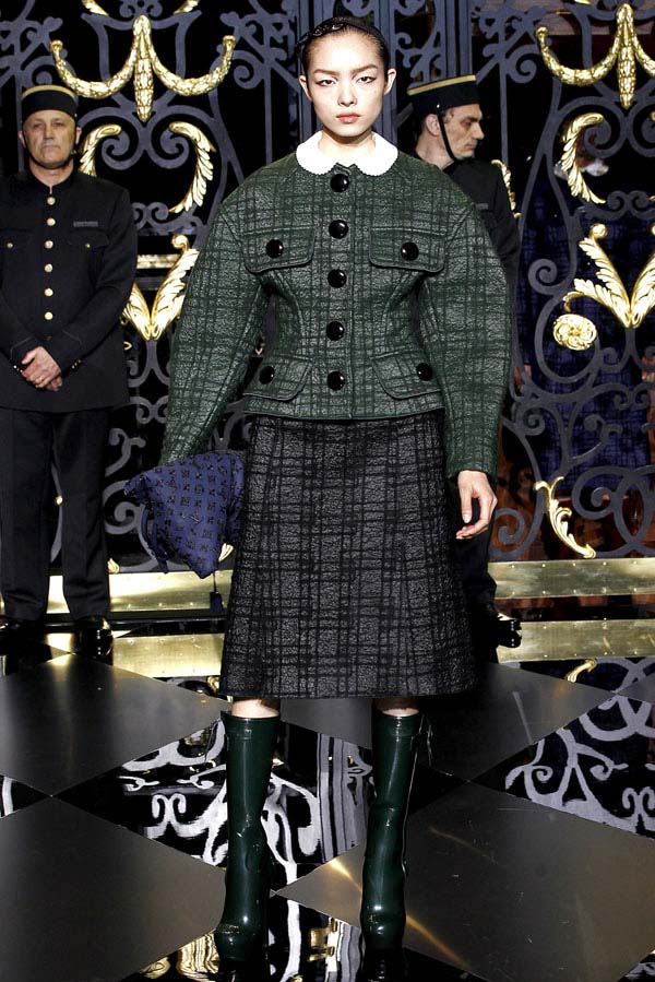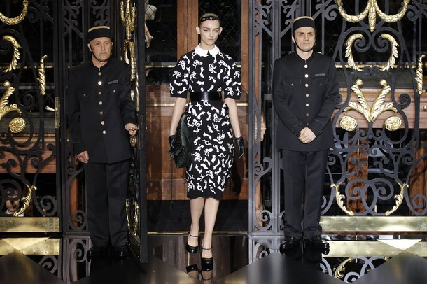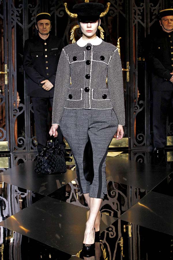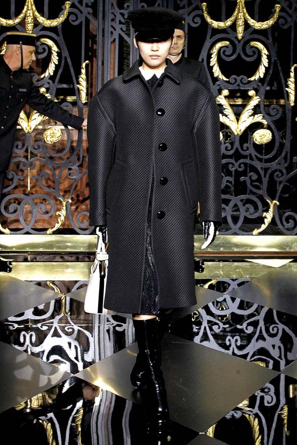 On the final day of Paris Fashion Week, Louis Vuitton show opened with fetish-inspired collection as the models stepped out of three elevators onto the catwalk. Creative director Marc Jacobs send models including Freja, Shu Pei and Kinga strutting the stuff on runway donning handcuffs, pantless outfits, leather pieces, lace and lovely sheer and masks placed on chauffeur hats.