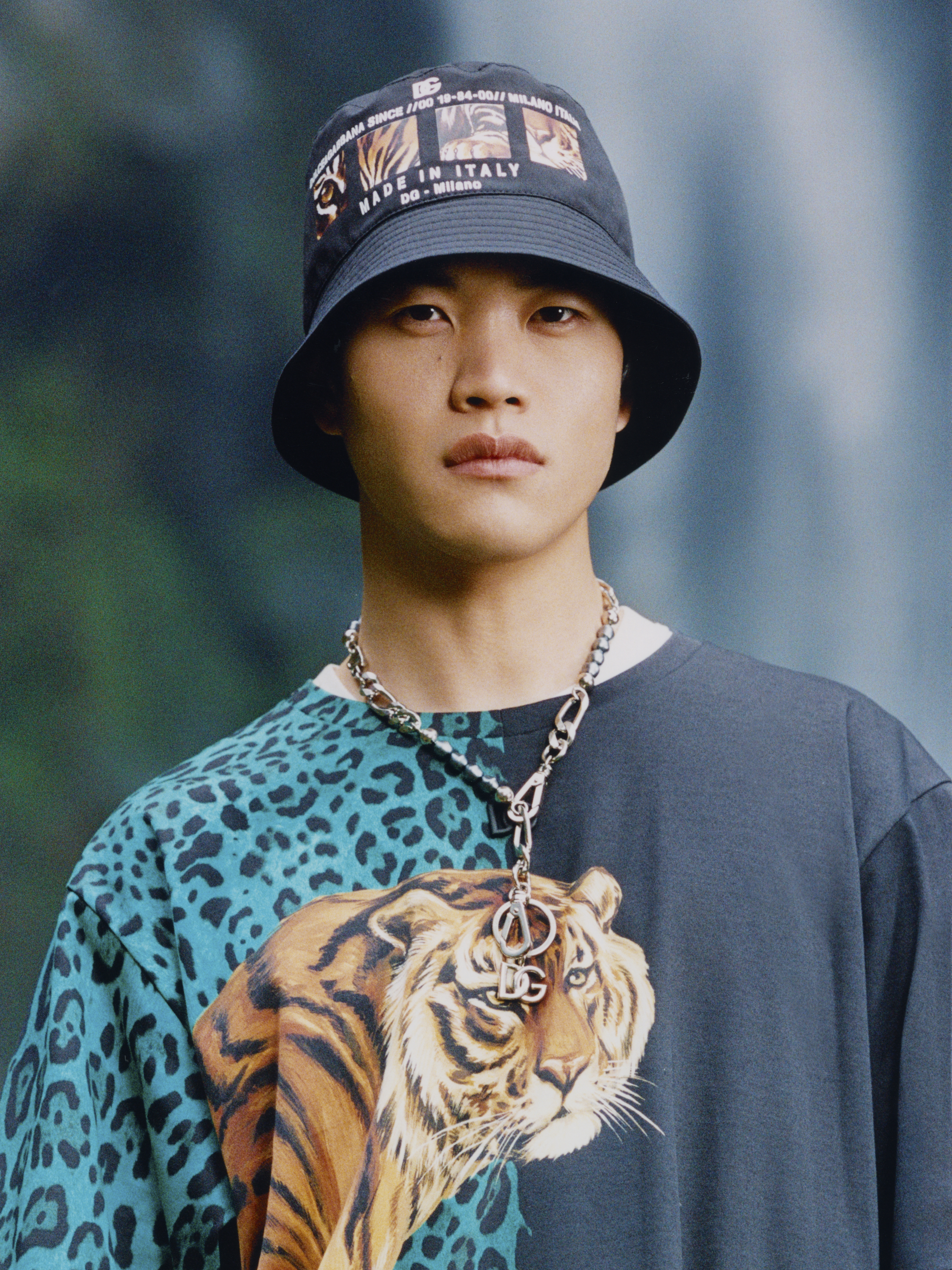 The iconic Dolce&Gabbana leopard print intertwines with the tiger pattern in different colours, enriched by an exquisite drawing of tigers with their noble and fi erce look The special prints are transposed into unique looks for Men, Women and Kids -- these are precious examples of craftsmanship and true love for Fatto a Mano which characterizes each Dolce&Gabbana creation.