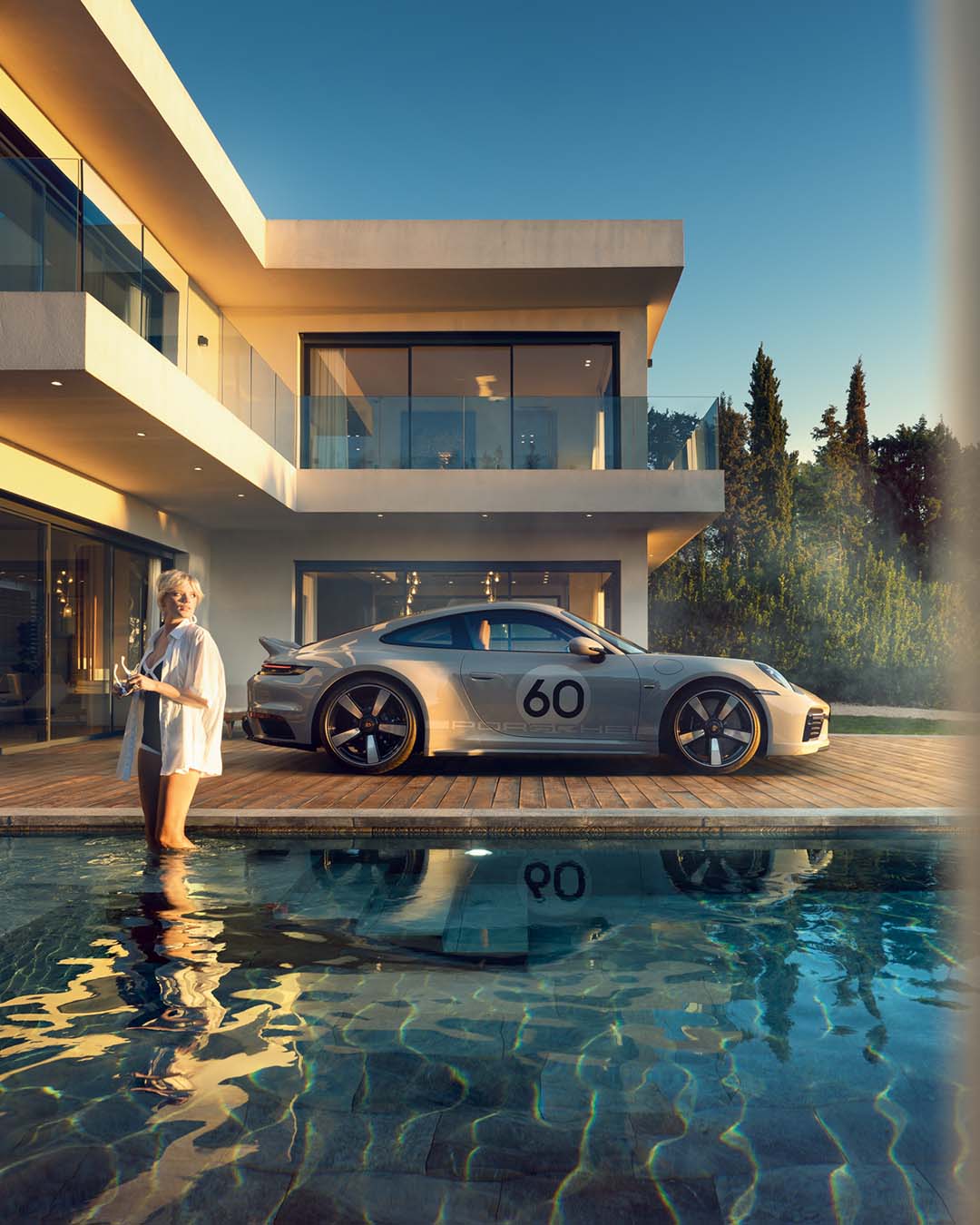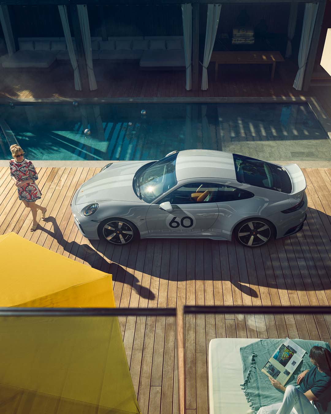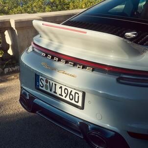 The 911 Sport Classic brings back the flair of a bygone era with the legendary ducktail spoiler, the typical 1960s pepita fabric and all of the details by Porsche Exclusive Manufaktur.