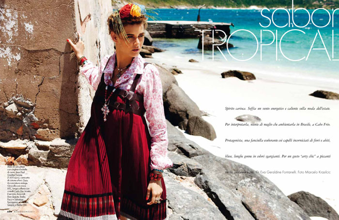 Model Flavia de Oliveira photographed by Marcelo Krasilcic showcasing the Spring/Summer designs from labels Dior, Yves Saint Laurent, Moschino and more.