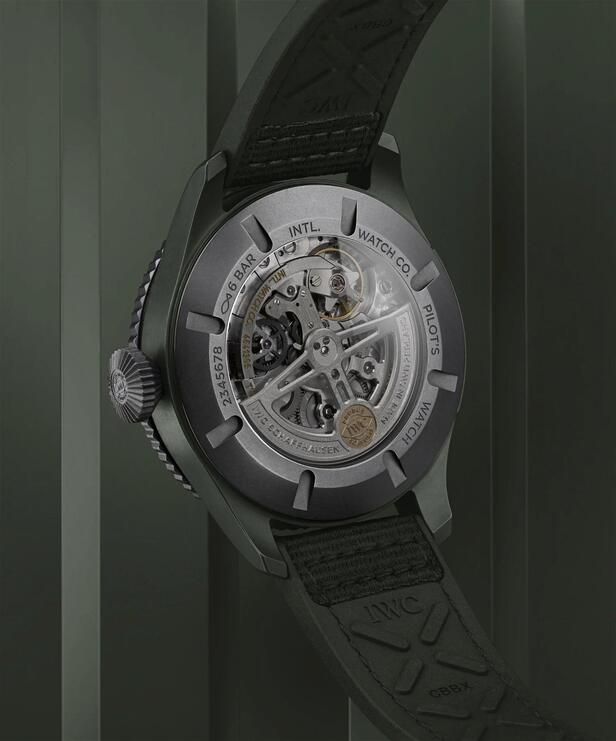 This watch comes in a distinct Woodland green ceramic case inspired by the naval aviation world, specifically from the flight suits worn at the TOPGUN flight school and the forests overflown by pilots.