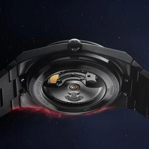 The design channels the mythic energy of the lone hero who descended from the stars to defend Earth. Crafted in full black PVD-coated steel, this commemorative edition reflects a sleek retro-futurism that carries the magnetic charm of vintage anime mixed with impeccable Swiss savoir-faire. The dial captures a dynamic scene where Grendizer dominates with a clenched fist angled forward as if ready to break through the sapphire crystal. Intricate engravings and layered textures grant the face a sculptural quality that makes the robot stand out with striking realism.