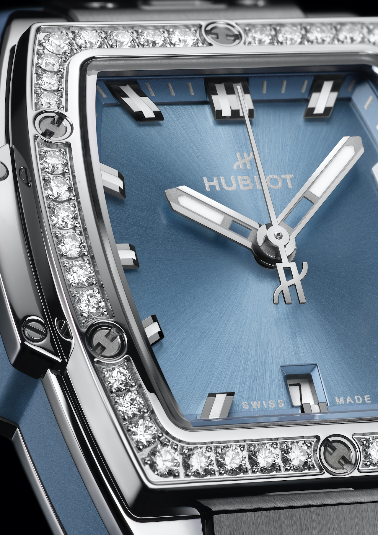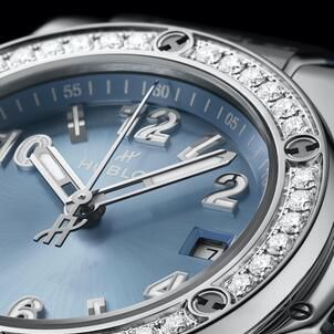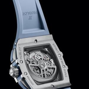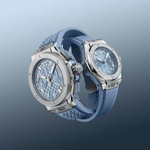 The bezels of the 33 mm Big Bang and the 32 mm Spirit of Big Bang are adorned with 36 and 44 diamonds respectively, all certified to the highest ethical standards. These precious additions accentuate the subtle variations of the sunray finished dials, which reveal an ever-changing palette of blue and gray. Crafted in stainless steel, these models offer a modern cameo effect that blends naturally with the coal blue rubber straps.