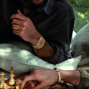 The curated jewelry collection features iconic designs crafted to stand the test of time. The Serpenti Viper single coil wrapping bracelet in yellow gold distills the mesmerizing allure of the Maison's most emblematic icon into a bold, contemporary aesthetic defined by sharp lines. A new, essential addition arrives in the form of the Serpenti Viper chain necklace with a mini pendant, offering a fresh and versatile expression of the captivating sign.