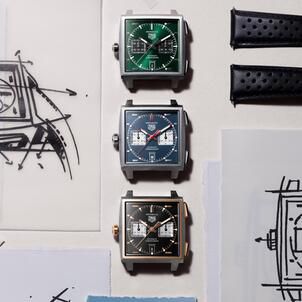 The collection is presented in three distinct colorways to suit every aesthetic. Fans of classic cinema will recognize the signature blue dial inspired by Steve McQueen’s appearance in the 1971 film Le Mans. A refined sunray-brushed dark green version draws on the heritage of British Racing Green, while an elegant black model is housed in a striking two-tone case of grade 5 titanium and 18K 5N rose gold. Each piece is paired with a racing-inspired perforated leather strap, ensuring the TAG Heuer Monaco Chronograph remains a contemporary icon.