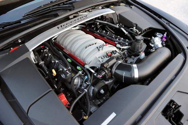 The 2013 VR1200 Twin Turbo Coupe ditches the stock block and blower for a 7.0-liter lump and a pair of turbos. With innards like forged pistons, connecting rods and a forged crankshaft, the engine is good for 1,226 horsepower and 1,109 pound-feet of torque at the flywheel. The company says the finished product is basically a de-tuned version of the same beating heart that powers the Venom GT.