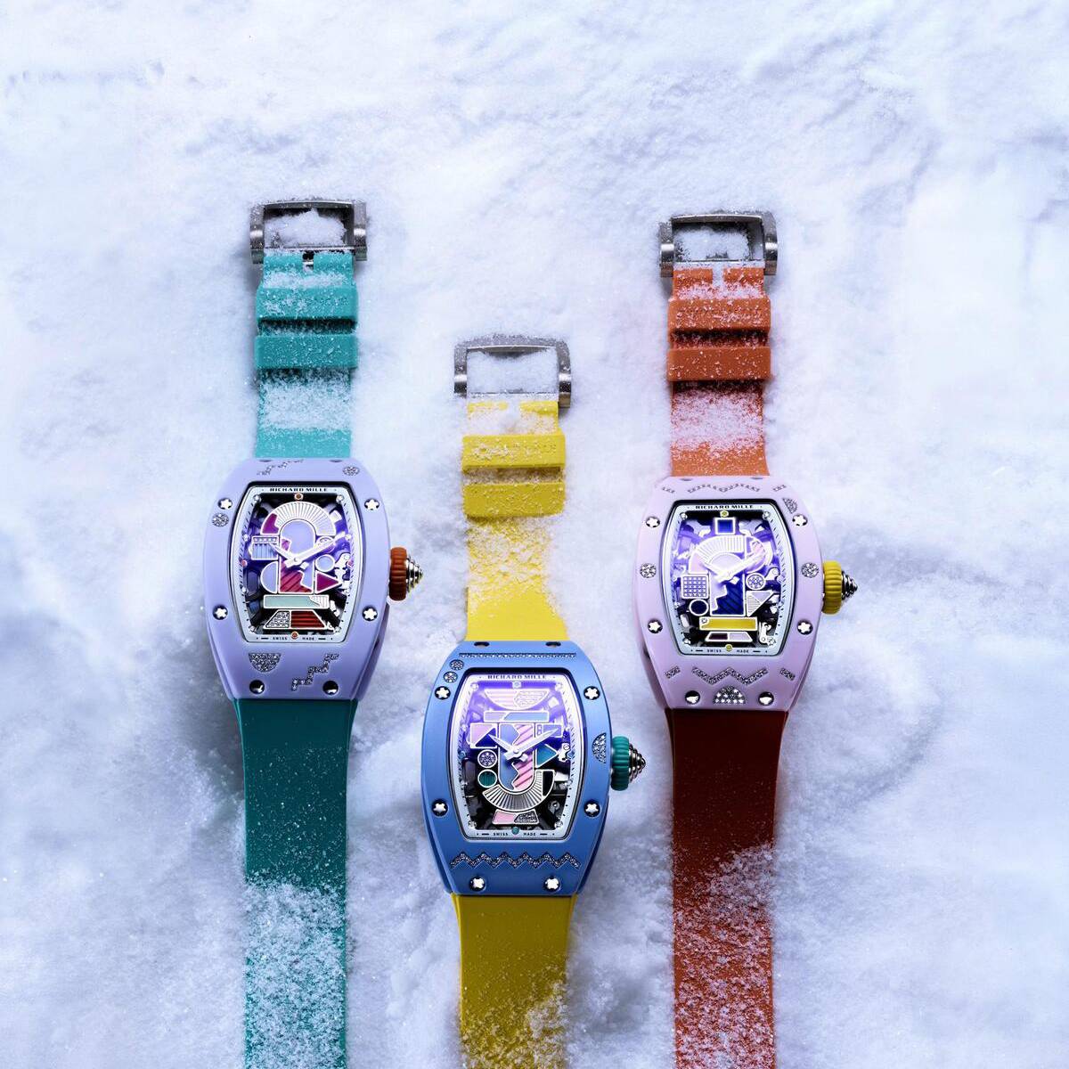 Inspiration for the collection stems from the electric energy of the 1980s, an era defined by emancipation and the use of unexpected materials. Richard Mille revisits this heritage through dials that are rich in decorative techniques. Creative and Development Director Cécile Guenat notes that "these watches play on the juxtaposition of vibrant colours and contrasting textures, asserting a singular and disruptive graphic identity".